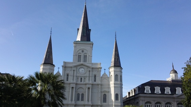 By the time we were done eating, it was time to start walking back to hear a jazz concert by some of the National Park Rangers. We’re glad we had time to walk through Jackson Square, a park that is in front of St. Louis Cathedral. Both the square and the church were beautiful. We also stopped in a few of the many, many shops that are in the French Quarter.