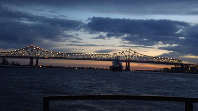The sun was just starting its descent as we left the park and headed for the Algiers Island Ferry which crosses the Mississippi River. It’s not a very long ride but it was fun watching the large barges on the river. On our return trip we saw one of the most beautiful sunsets that we’ve seen on our trip. The colors and lights over the French Quarter were breathtaking. We snapped a lot of pictures!
